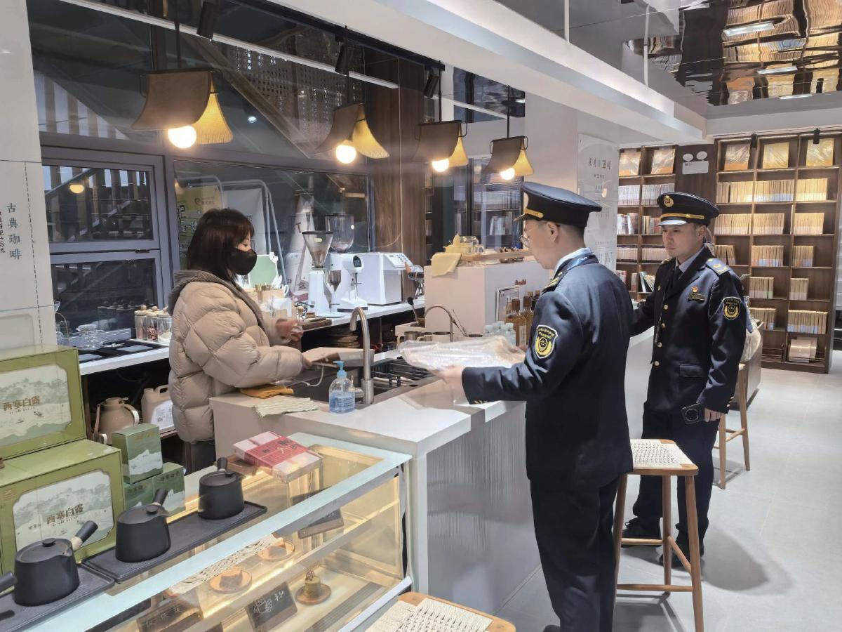 未苏湾集餐饮、购物、休闲体验等多元业态于一体,飞檐翘角的院落,白墙灰瓦的巷陌,让这处文旅消费新地标颇具地域文化色彩。去年下半年,下陆区市场监管局工作人员逐一上门,登记了解这里经营户的主营产品、发展历程、亮点特色等信息,并定制专属“放心消费码”,确保经营主体一户一码,凸显未苏湾的文化色彩。